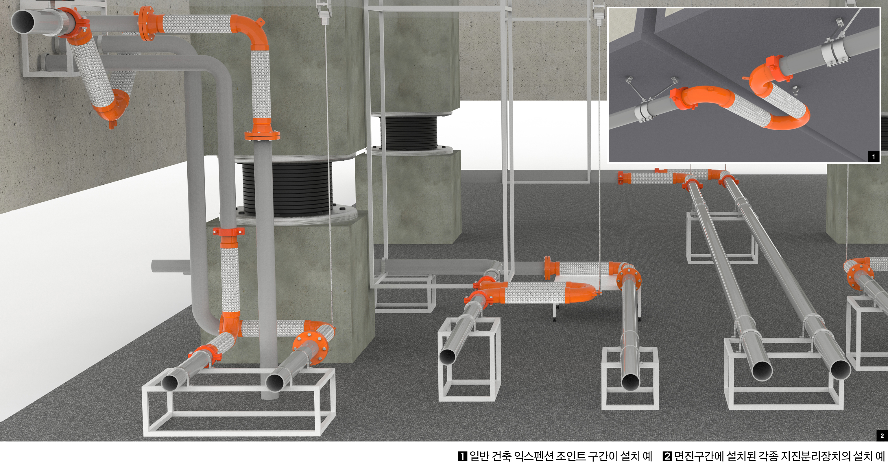 - 면진건물의 면진구간을 통과하는 모든 배관