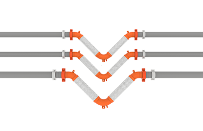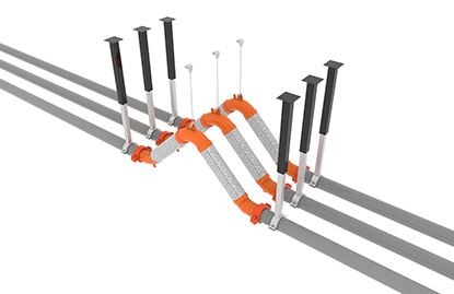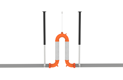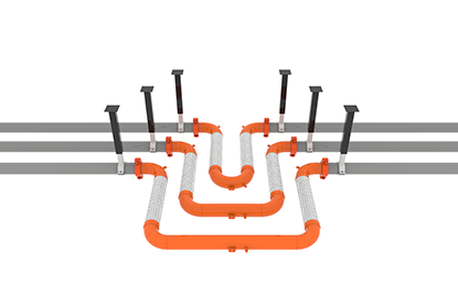 V-LoopJRMS의 V-Loop Type은 다른 Type에 대비 수두율이 적고, 아래와 같이 Single 배관이나 Multi 배관의 복렬 Lay-out에 간섭없이 효과적으로 적용할 수 있어서 복잡한 복렬 배관이 지나가는 구간의 설치에 용이한 구조입니다.