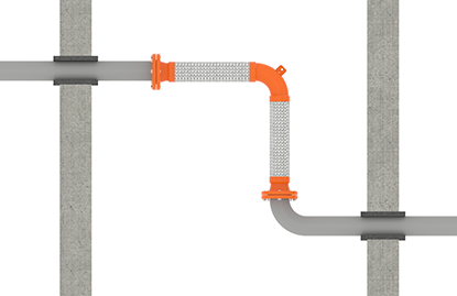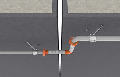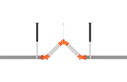 L-Type(Dog-Leg) JRMS의 L-Type은 일본이나, 대만에서 많이 적용하는 Type으로 우리나라도 원전이나 면진빌딩의 면진구간에 많이 적용되는 Type입니다. 빌딩 연결통로나 건물의 송수 도입부에 적용시 보다 더 경제적인 설치로 선호하고 있습니다.